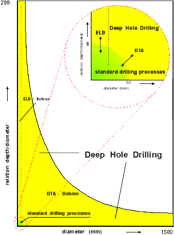 Das große Einsatzgebiet der Tief- bohrtechnik im Vergleich zum kon-ventionellen Bohren. (Wendelbohrer, Spitzbohrer, Kurzbohrer etc.)